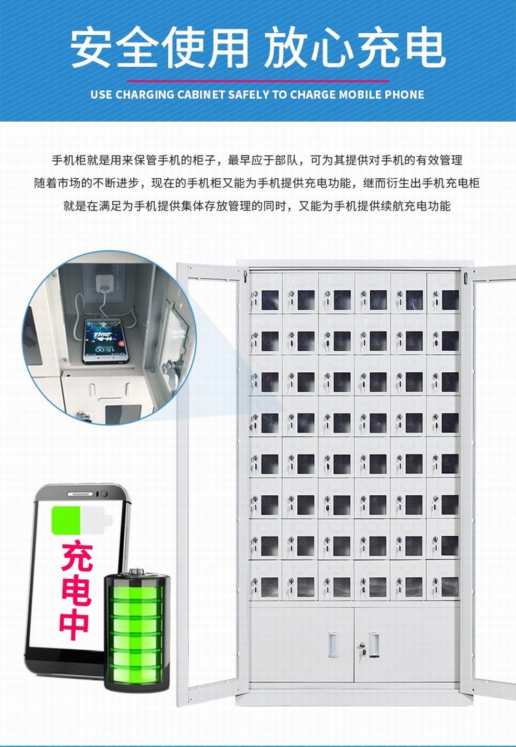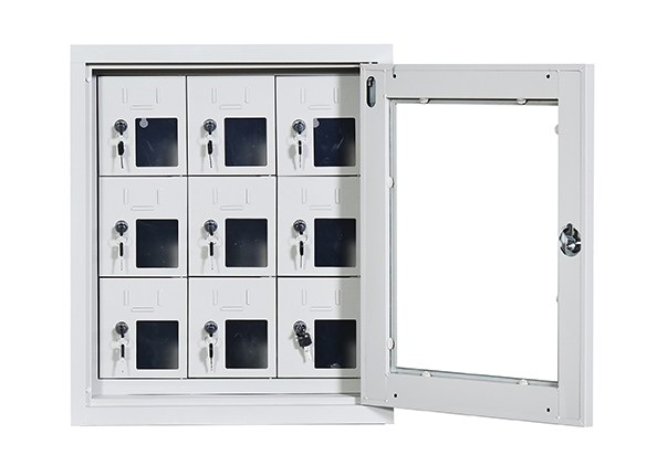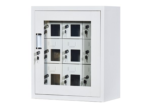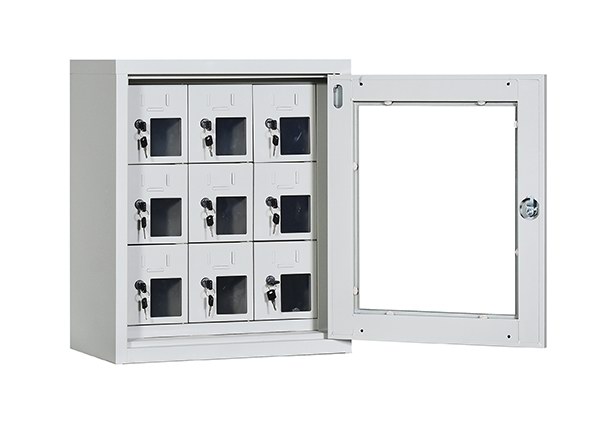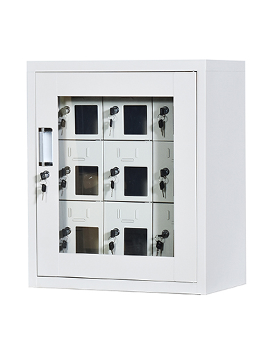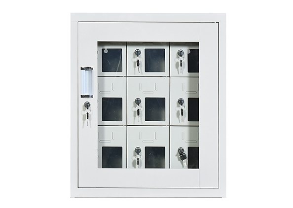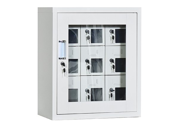 手機保密柜正面為對開金屬邊框玻璃大門,便于觀察柜內(nèi)情況,堅固透亮,美觀大方。